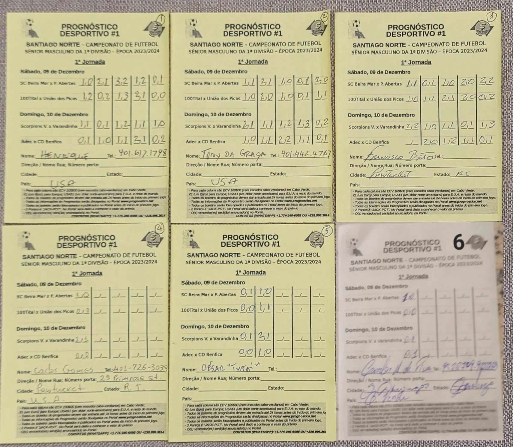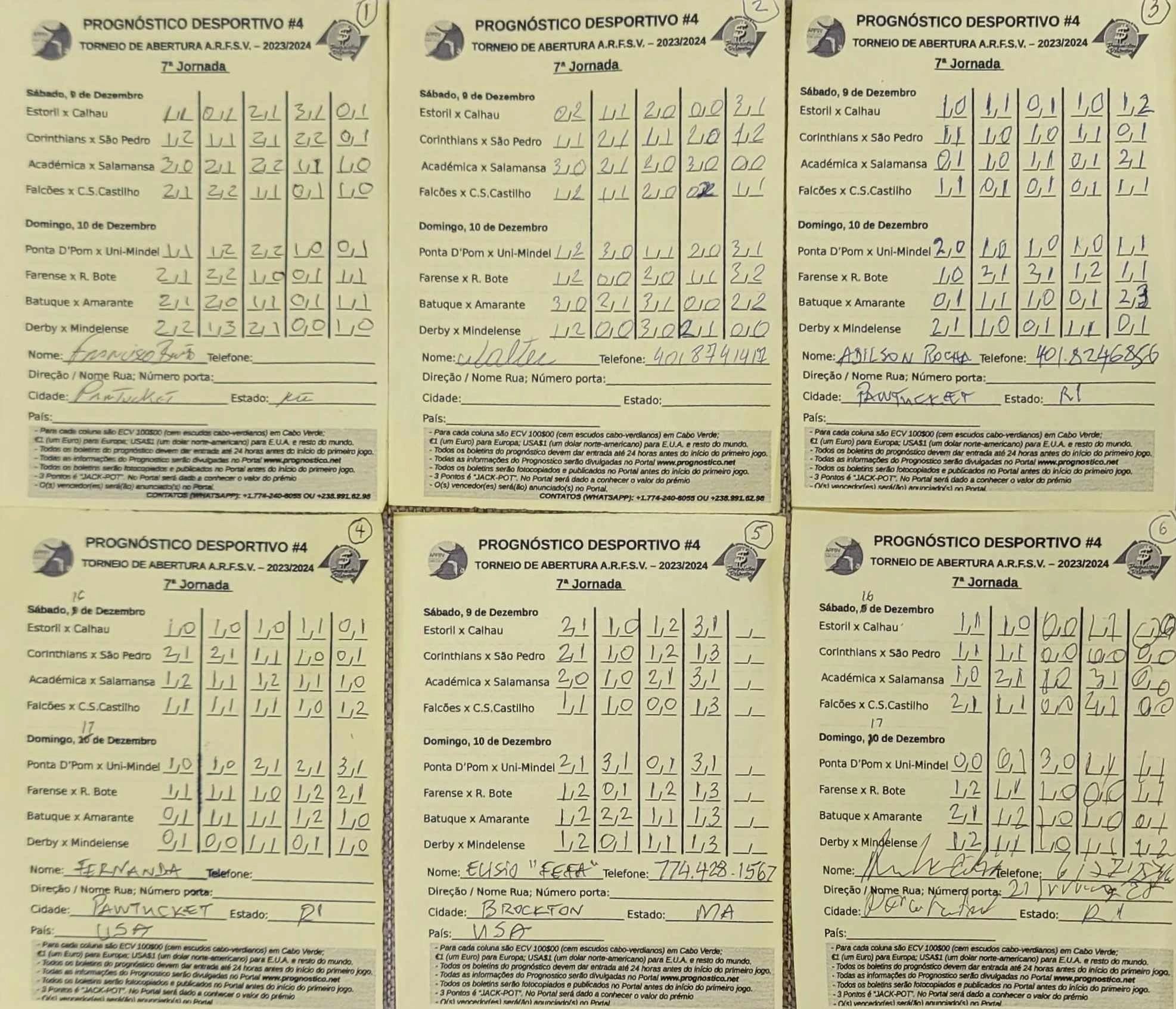 Na cidade de Brockton o levantamento e entrega dos boletins pode ser feito na Barbearia Sodade no Elisio Ramos. Na cidade de Boston é na loja do Afonso. E na cidade de Pawtucket em Dante Club.