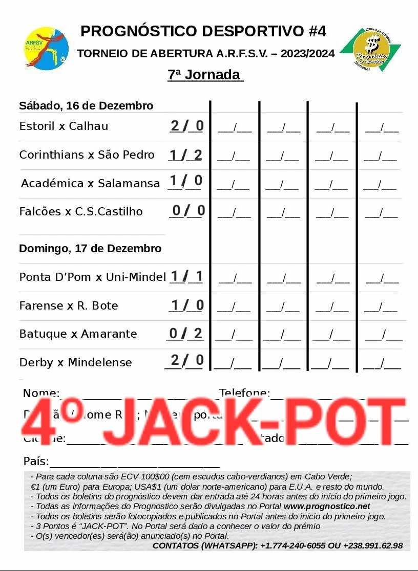 4º JACK-POT NO PROGNÓSTICO DE SÃO VICENTE.