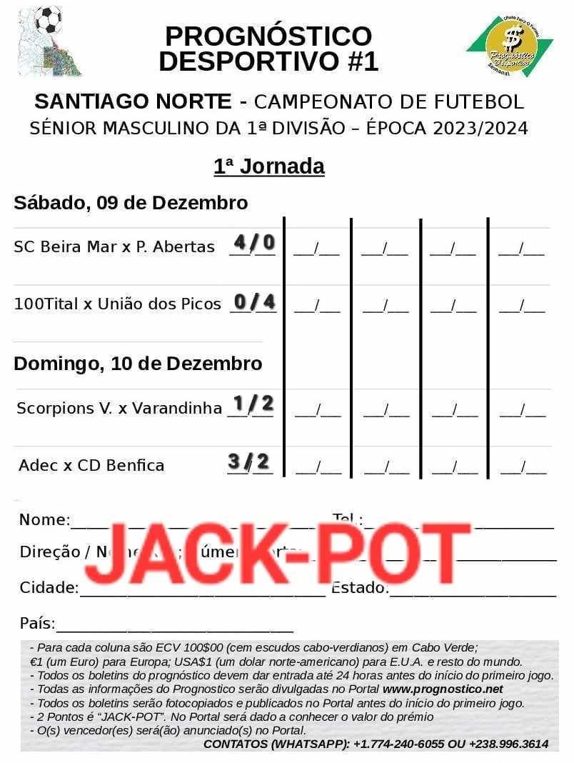MAIS 2 "JACK-POTS" NO PROGNÓSTICO. CAMPEONATO DE PORTUGAL E CAMPEONATO DE SANTIAGO NORTE