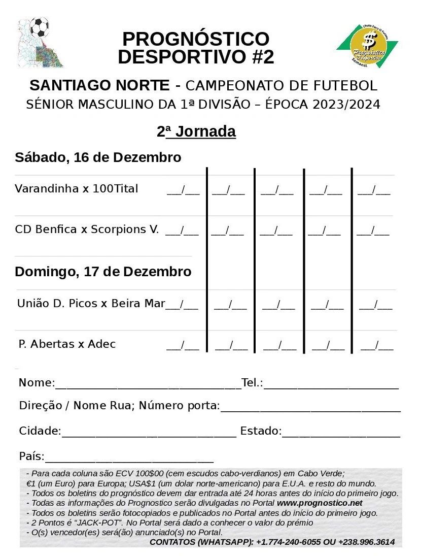 No próximo fim de semana será a 4ª edição do Prognóstico Desportivo de S.Vicente até então ninguem conseguiu vencer este jogo.