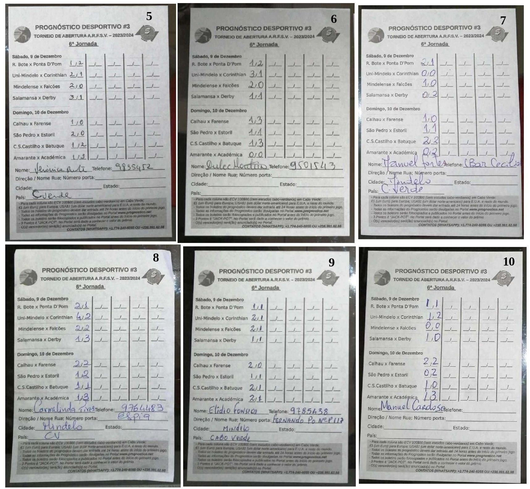 9 - Na ilha de São Vicente o jogo será promovido e os boletins distribuídos pela ARFSV e colocado em diferentes lugares como Clubes de futebol associadas e em lugares.